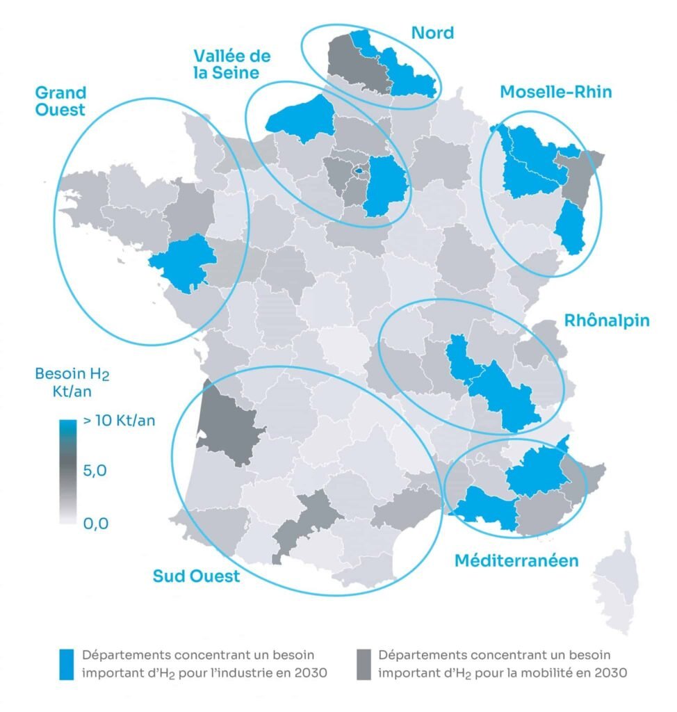 France Hydrogène makes its contribution to the implementation of this Strategy, by proposing a roadmap through quantified deployment objectives for 2030 and by locating anchor points for massive deployment on the national territory with seven large basins identified geographic areas where the pooling of production and uses will make it possible to reduce costs. “Large territorial hubs are being set up on the national territory, making it possible to ultimately ensure a complete network,” underlines Philippe Boucly, president of France Hydrogène.