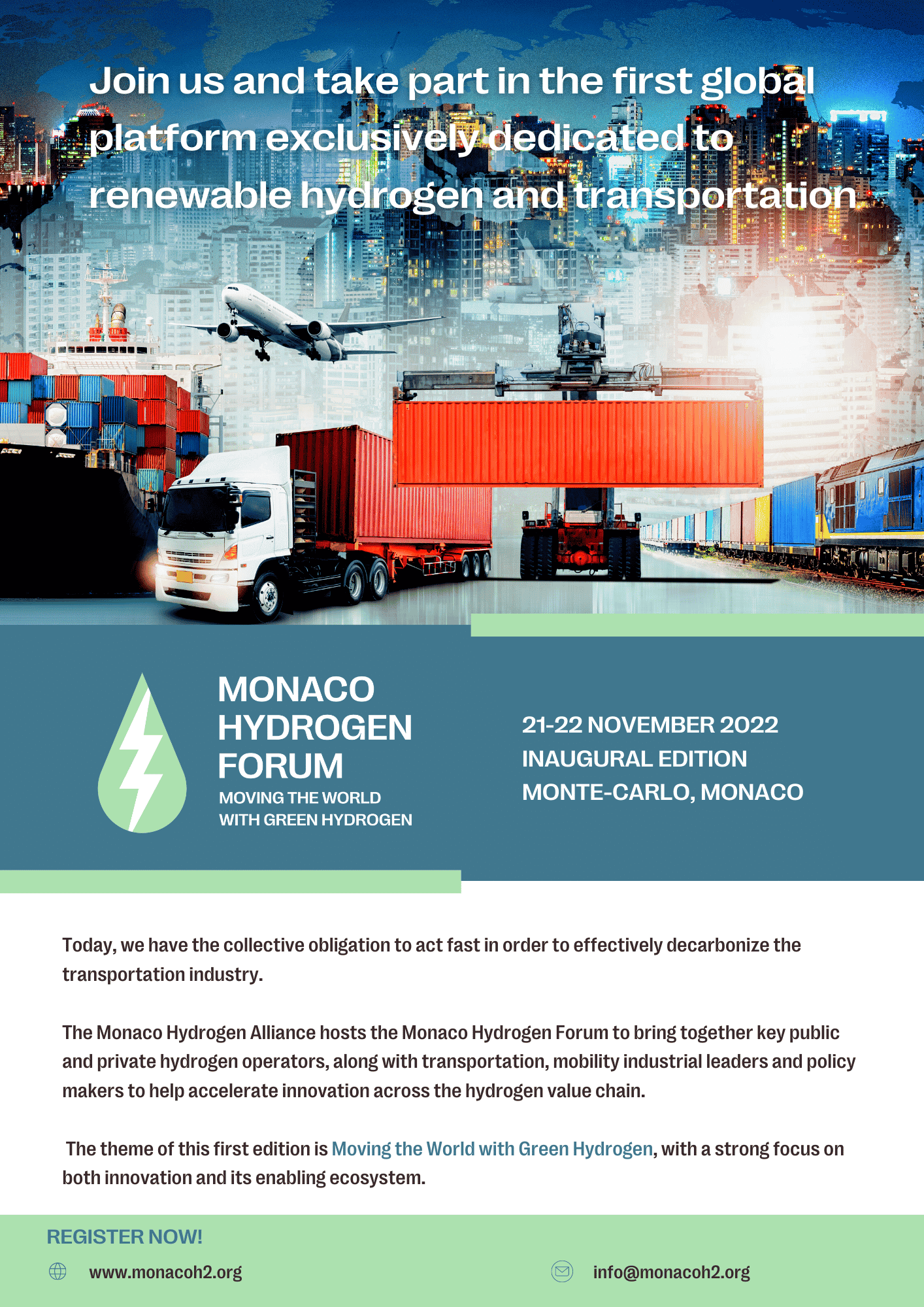 Monaco Hydrogen Forum: 21 & 22 November 2022, Monaco. To participate, contact info@monacoh2.org (15% discount code for Innovation24.news readers: MHA24INNO24 ) |